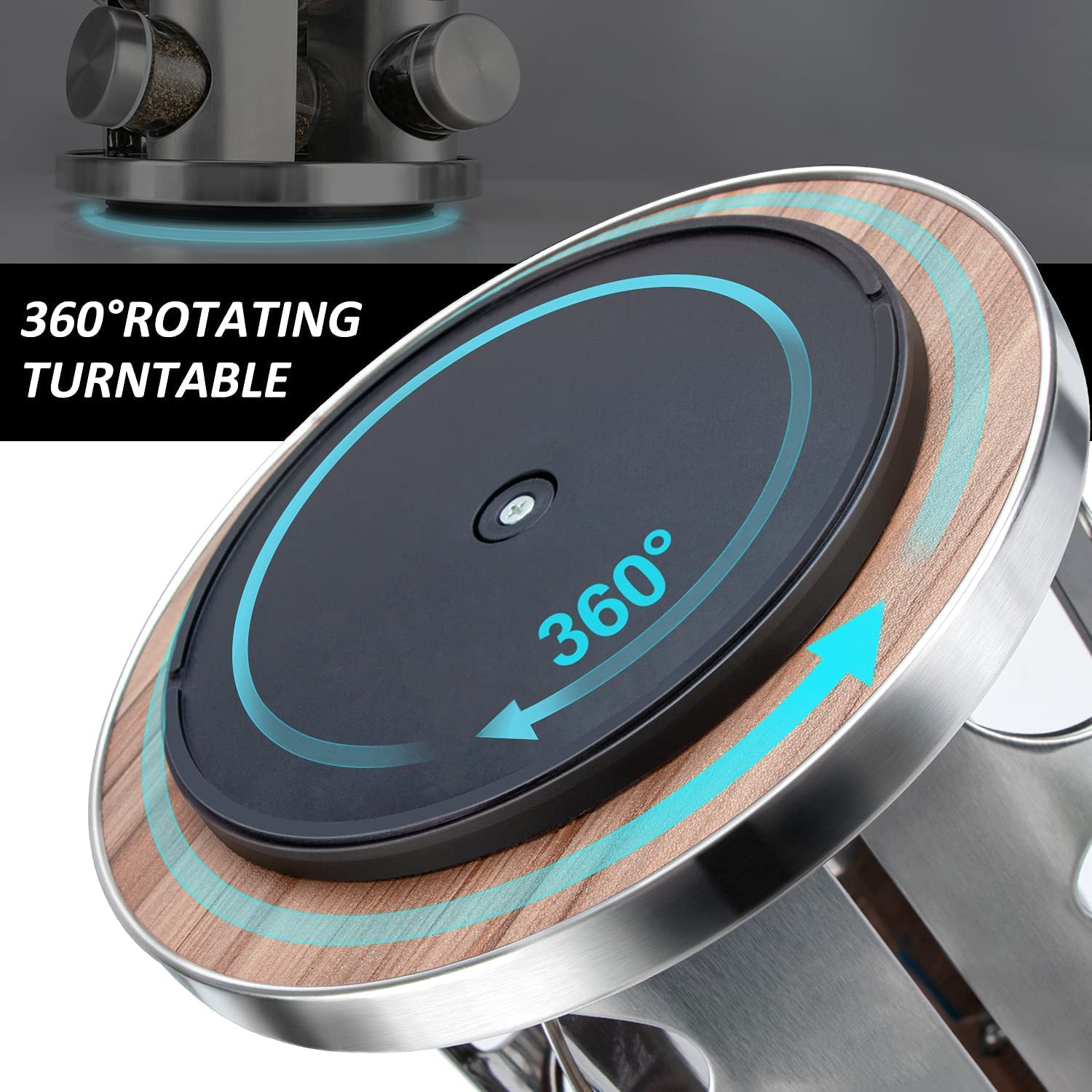 Modern Rotating Spice Rack: The spice rack organizer has excellent flexibility and sturdiness. It can be rotated 360° without any resistance. The modern design and attractive stainless-steel finish make it suitable for every kitchen them.