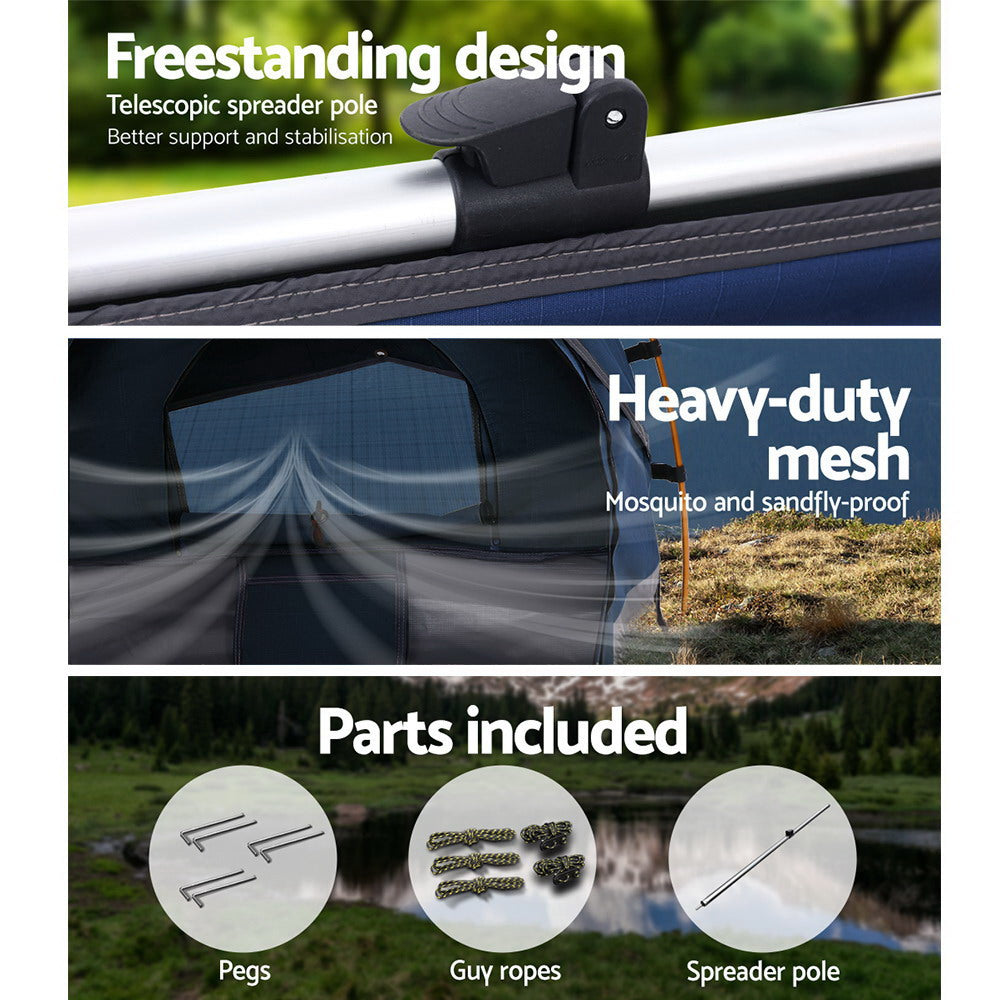 Weisshorn King Single Camping Swag Canvas Free Standing Dome Tent Blue
